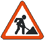 Vaiavimo kryptis ribotai matomo, mao spindulio kelio vingyje, kelio susiaurėjimo arba kelio remonto, statybos darbų vietoje