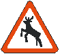 Įspėja apie kelio ruoą, kuriame yra didelė tikimybė, kad per kelią gali eiti vėrys