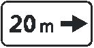 Nurodo kelio enklų, draudiančių sustoti ar stovėti, galiojimo zonos kryptį (į dešinę) ir ilgį